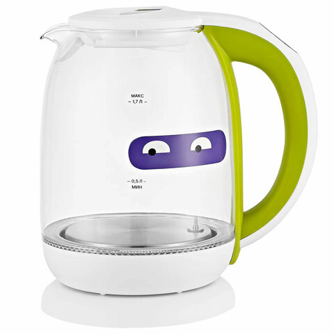 Чайник KITFORT КТ-6140-2, 1,7 л, 2200 Вт, закрытый нагревательный элемент, ТЕРМОРЕГУЛЯТОР, стекло, белый/салатовый