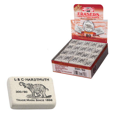 Ластик KOH-I-NOOR "Слон" 300/80, 26x18,5x8 мм, белый, прямоугольный, натуральный каучук, 0300080019KDRU