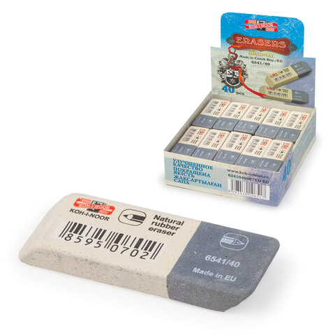 Ластик KOH-I-NOOR 6541/40, 57x19,5x8 мм, бело-серый, прямоугольный, скошенные края, натуральный каучук, 6541040007KDRU