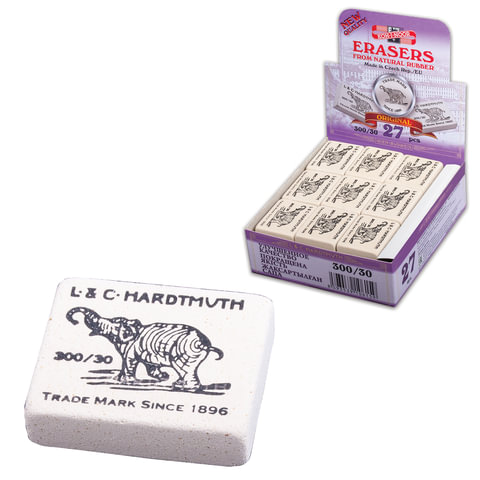 Ластик KOH-I-NOOR "Слон" 300/30, 35,5х28,5х10 мм, белый, прямоугольный, натуральный каучук, 0300030029KDRU
