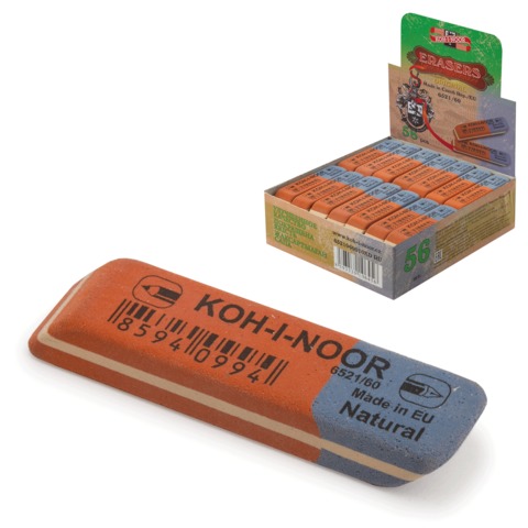 Ластик KOH-I-NOOR 6521/40, 57x19,5x8 мм, красно-синий, прямоугольный, скошенные края, натуральный каучук, 6521040021KDRU