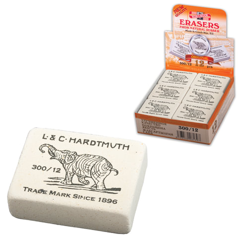 Ластик KOH-I-NOOR "Слон" 300/12, 48х37х16 мм, белый, прямоугольный, натуральный каучук, 0300012002KDRU