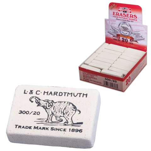 Ластик KOH-I-NOOR "Слон" 300/20, 45х32х12 мм, белый, прямоугольный, натуральный каучук, 0300020024KDRU