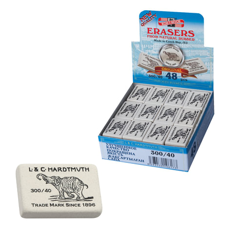 Ластик KOH-I-NOOR "Слон" 300/40, 35,5x23x8 мм, белый, прямоугольный, натуральный каучук, 0300040026KDRU