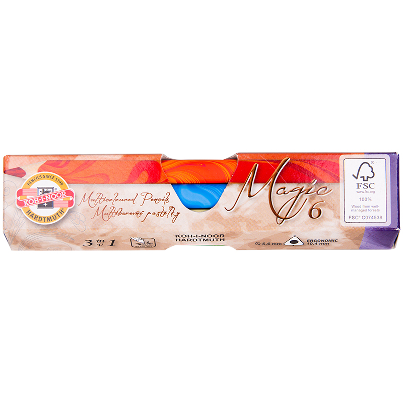 Карандаши с многоцветным грифелем Koh-I-Noor "Magic", 06цв., утолщенные, заточен., картон.,европод.