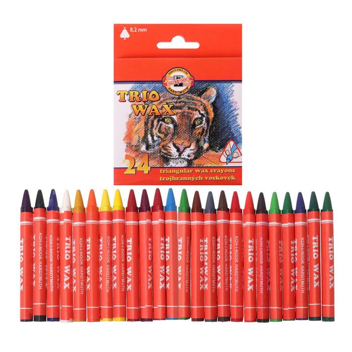 Мелки восковые 24 цвета Koh-I-Noor TRIO 8274, D=8,2 мм, L=90 мм, картонная упаковка, европодвес