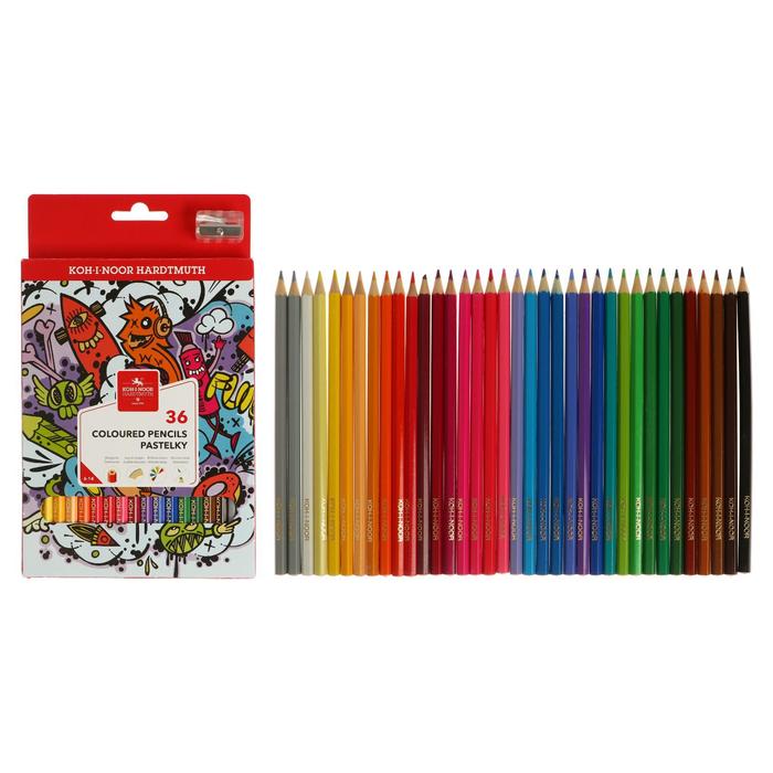 Карандаши 36 цветов Koh-I-Noor TEENAGE 3555, с точилкой, картонная упаковка, европодвес