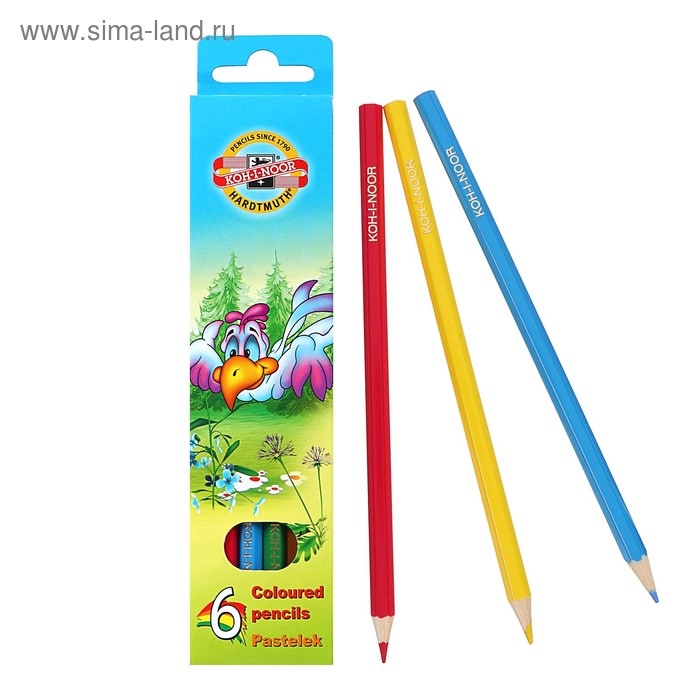 Карандаши 6 цветов Koh-I-Noor 3551, "Птицы", картонная упаковка, европодвес