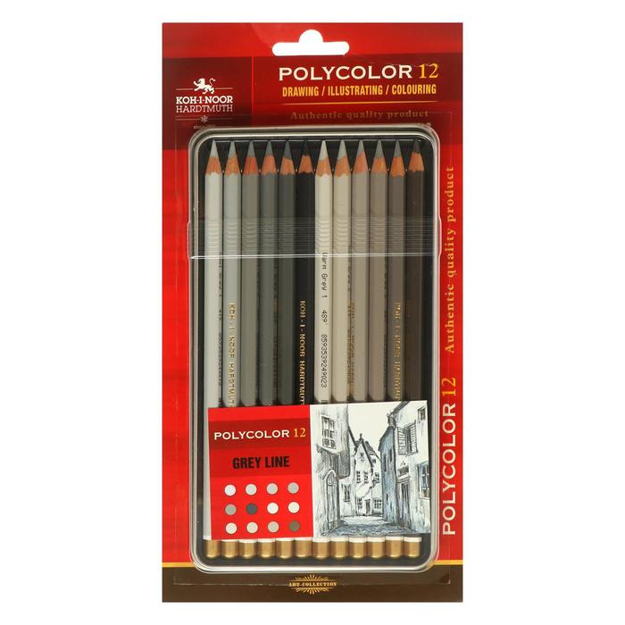 Карандаши Koh-I-Noor POLYCOLOR 3822, BRAUN LINE, металлический пенал в блистере, 12 цветов