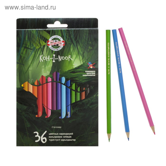 Карандаши Koh-I-Noor 3595 «Динозавр», 36 цветов, картонная упаковка
