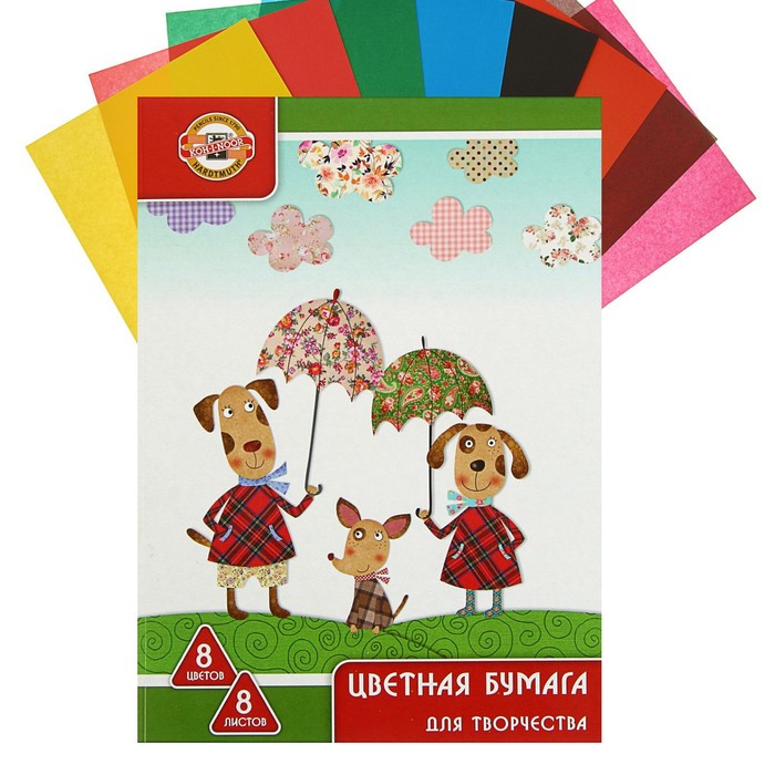 Бумага цветная А4, 8 листов, 8 цветов Koh-I-Noor офсет, 65 г/м²
