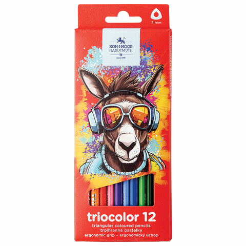 Карандаши цветные KOH-I-NOOR "Triocolor", 12 цветов, трехгранные, грифель 3,2 мм, натуральное дерево, 3132/12, 3132012004KSRU