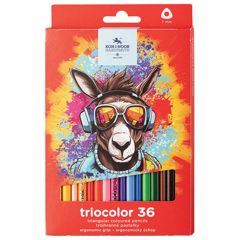 Карандаши цветные KOH-I-NOOR "DONKEY" 36 цветов, трехгранные, 3,2 мм, натуральное дерево, 3135/36, 3135036013KS