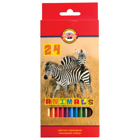 Карандаши цветные KOH-I-NOOR "Animals", 24 цвета, шестигранные, натуральное дерево, 3554/24, 3554024008KSRU