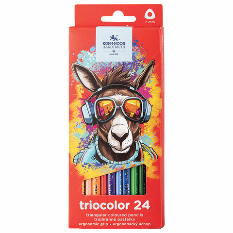 Карандаши цветные KOH-I-NOOR "DONKEY" 24 цвета, трехгранные, 3,2 мм, натуральное дерево, 3134/24, 3134024013KS