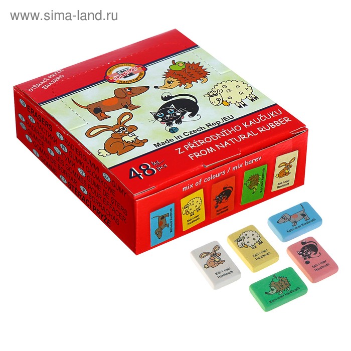 Ластик для чернографитных карандашей Koh-I-Noor 6200/6 "Африка", МИКС, 48 штук