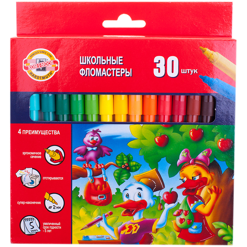 Фломастеры Koh-I-Noor "Утята", 30цв., трехгранные, смываемые, картон, европодвес