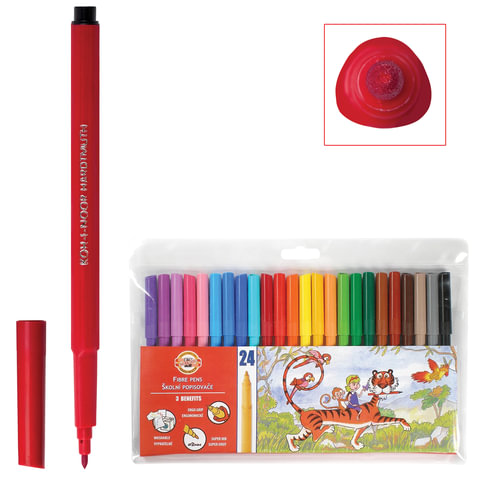 Фломастеры KOH-I-NOOR, 24 цвета, смываемые, трехгранные, пластиковая упаковка, европодвес, 771002BD04TERU