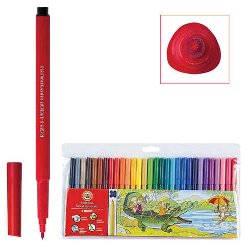 Фломастеры KOH-I-NOOR, 30 цветов, смываемые, трехгранные, пластиковая упаковка, европодвес, 771002CJ04TERU