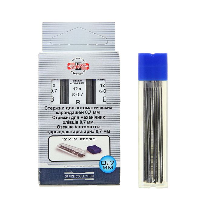 Грифели для механических карандашей, 0.7 мм, Koh-I-Noor 4162 B, 12 штук, в футляре