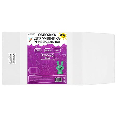 Обложка для учебников " KWELT " ПВХ 220*460мм 100мкм универсальная, с клапаном
