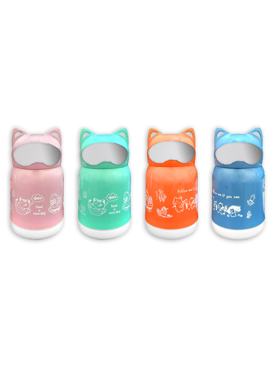 Бутылка для воды " KWELT " 380мл, Котик, стеклянная колба, пластик, ассорти (без возможности выбора дизайна), петелька для переноски