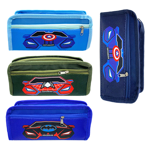 Пенал " KWELT " 1 отделение 200*90*40мм, Superhero car, внешний карман на молниии, цвет - ассорти (без возможности выбора цвета), текстиль, пакет, европодвес