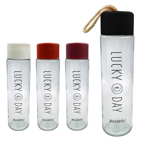 Бутылка для воды " KWELT " 350мл, Lucky day, прозрачная, стеклянная, ассорти (без возможности выбора дизайна), петелька для переноски