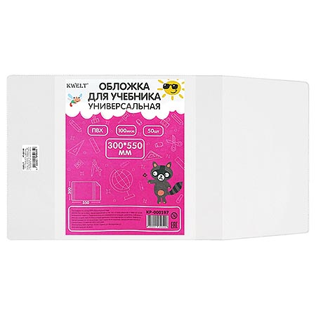 Обложка для учебников " KWELT " ПВХ 296*560мм 100мкм универсальная, с клапаном