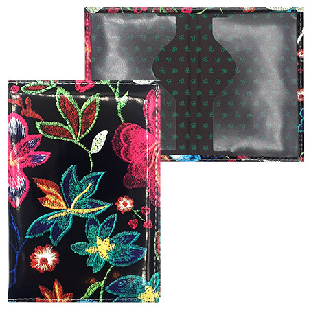 Обложка для паспорта " KWELT " искусственная кожа Цветы, оттенки розового на черном, прозрачный клапан, вырез для визитки/карты, пакет, европодвес