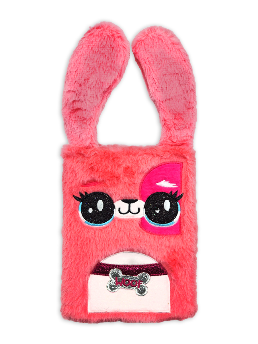 Блокнот А5 искусственный мех 80л " KWELT " Щенок, клетка, сшивка, белый офсет, блестки, 21*15см