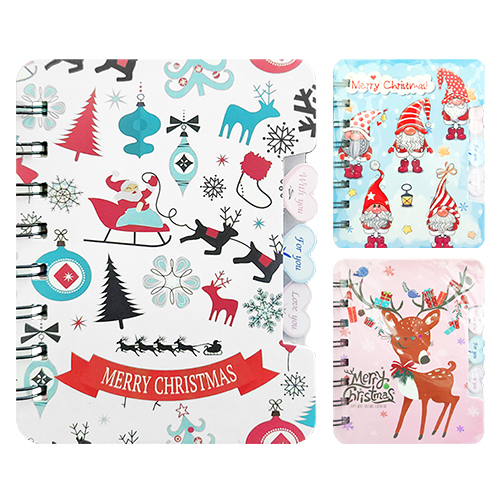Блокнот МАЛЫЙ ФОРМАТ 95*120мм спираль 3 разделителя 7БЦ 48л " KWELT " Merry Christmas, ассорти (без возможности выбора дизайна), линия, обложка- ламинированный картон, дизайнерский блок, 4 дизайна, пакет, 9,5*12*1см