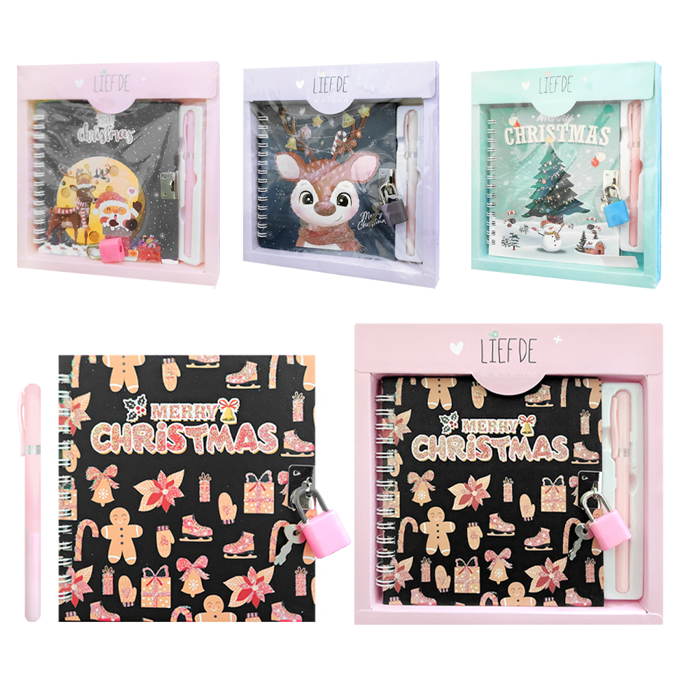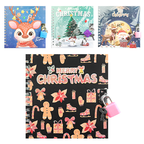 Блокнот МАЛЫЙ ФОРМАТ 130*135мм спираль 7БЦ 46л " KWELT " Merry Christmas, ассорти (без возможности выбора дизайна), линия, обложка- ламинированный картон, на замке, дизайнерский блок, 4 дизайна, ручка - синяя, подарочная упаковка, пакет, 18*18*2см