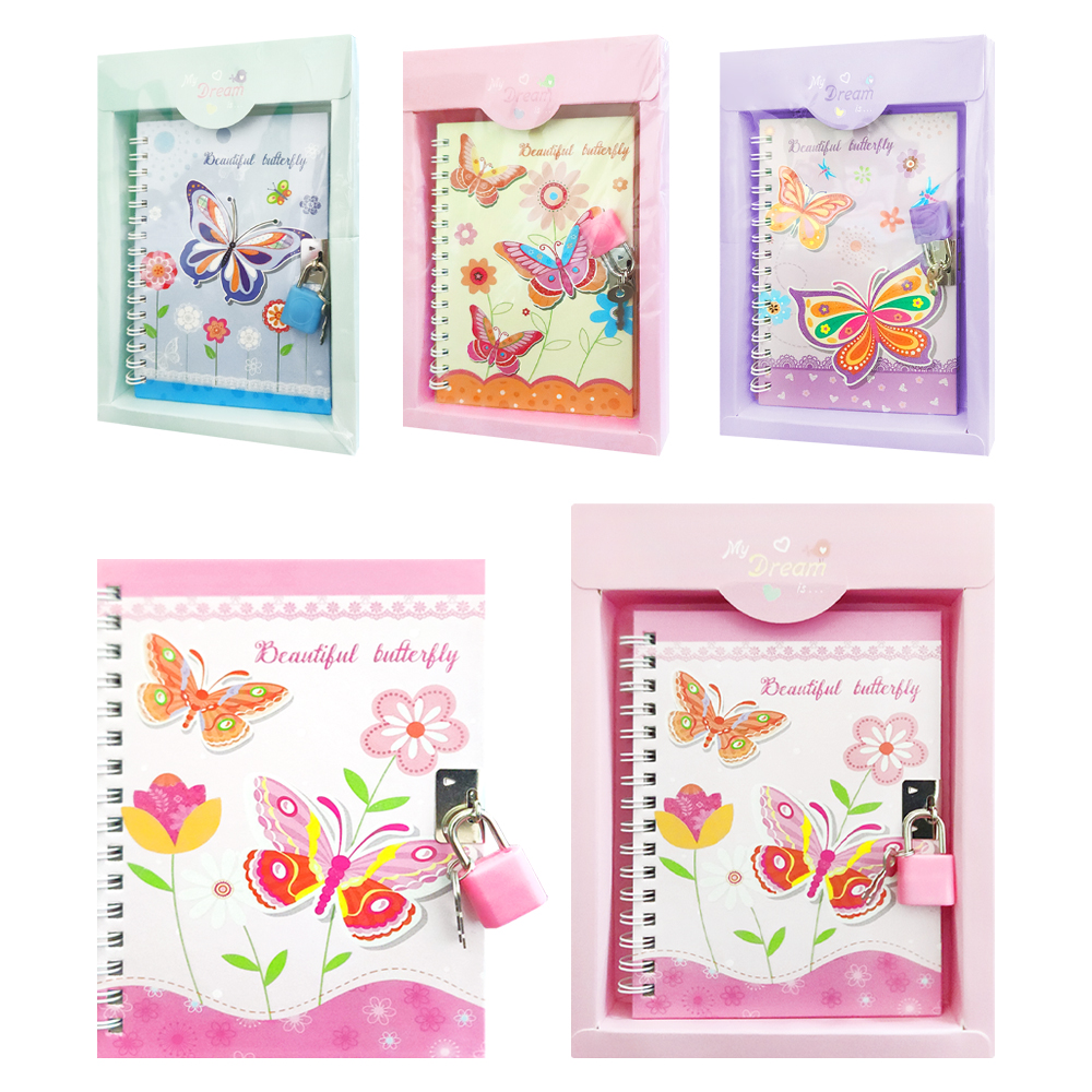 Блокнот МАЛЫЙ ФОРМАТ А6 спираль 7БЦ 46л " KWELT " Beautiful butterfly, ассорти (без возможности выбора дизайна), линия, обложка- ламинированный картон, на замке, дизайнерский блок, 4 дизайна, подарочная упаковка, пакет, 14,5*19*2см