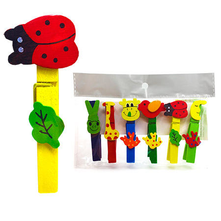 Прищепки декоративные " KWELT " Зверушки деревянные 6шт 72*10мм, пакет, европодвес