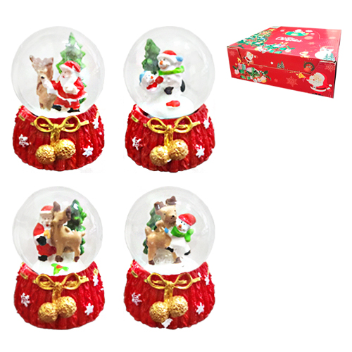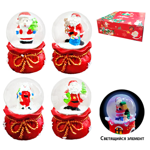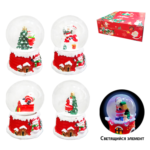 Сувенир новогодний " KWELT " светящийся Шар 4,5см, Снеговик у домика, ассорти (4 дизайна), батарейки в комплекте, картонная упаковка 24,5*19,5*9,5см