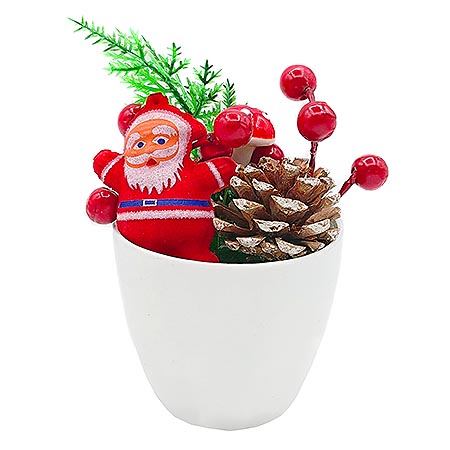 Сувенир новогодний " KWELT " Ягоды и Дед Мороз в горшочке 13см, без индивидуальной упаковки, индивидуальный штрих-код