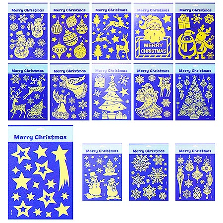 Набор наклеек " KWELT " светящиеся Новогодние 18,5*27,5см, ассорти (без возможности выбора дизайна), пакет