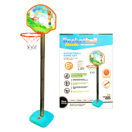 Кольцо баскетбольное " Basketball stands " в наборе: кольцо баскетбольное на подставке 125,5см, подставка заполняется песком или водой, сетка, мяч, насос, картонная упаковка 35*25,3*12см