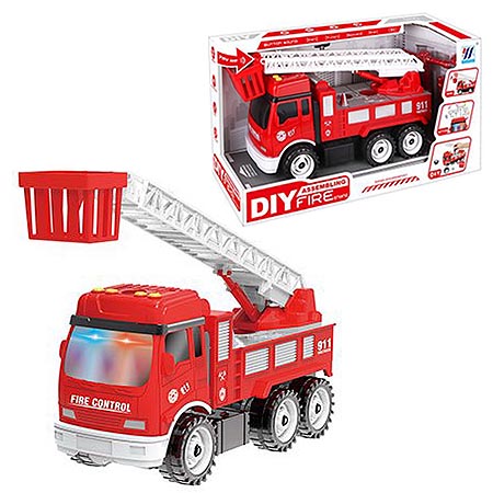 Машина " Diy assembling fire enging " 24*8*15см, световые и звуковые эффекты, разборная, инструменты для сборки-разборки в комплекте, картонная упаковка 35*13*19,5см