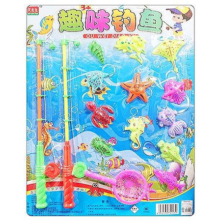 Набор " Рыбалка " 55*40см 15 предметов: 2 удочки- 41см, рыбки и морские обитатели на магните - 12шт, сачок, картонный блистер, европодвес