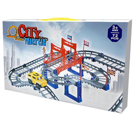 Автотрек " City Track Car " в наборе: машинка 6*4,5см, детали трассы - 71шт, наклейки, картонная упаковка 33*21*6см