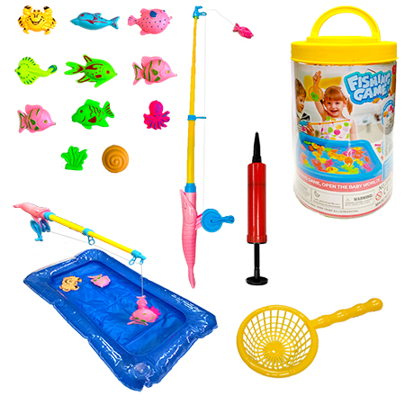 Набор " Рыбалка " 11,5*20см 14 предметов: удочка складная- 47см, рыбки и морские обитатели на магните - 10шт, сачок, насос, бассейн надувной 38*22*4см, пластиковая банка
