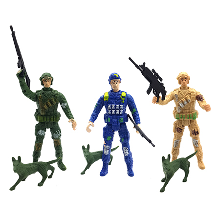 Набор солдатиков " Solder Modern War " ассорти, 3 предмета в наборе: солдат, собака, автомат, пакет (3 дизайна без возможности выбора)
