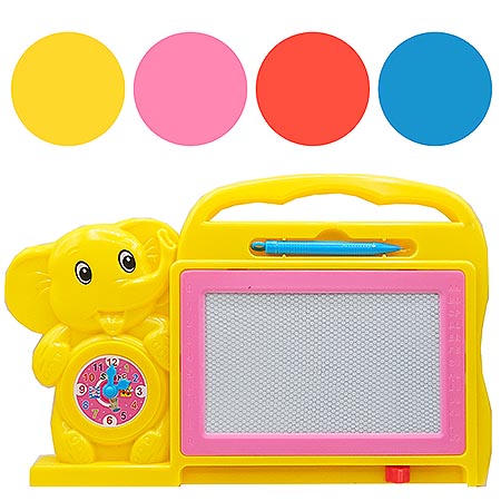 Доска " KWELT " Волшебный экран 33*21см Веселый слоник в комплекте: ручка магнитная, часы с двигающимися стрелками для изучения времени, ассорти (без возможности выбора цвета), пакет, европодвес