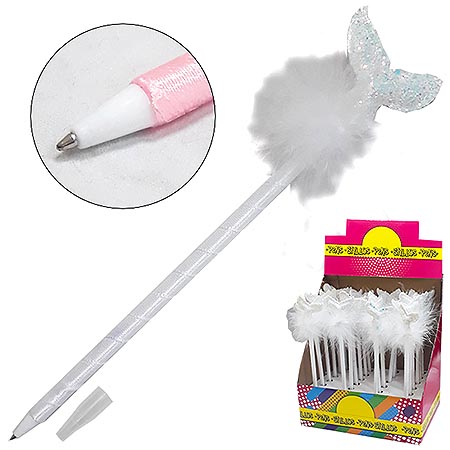 Ручка шариковая " KWELT " Хвост русалки белый в дисплее синий 0,5мм, цвет корпуса- белый, блестки