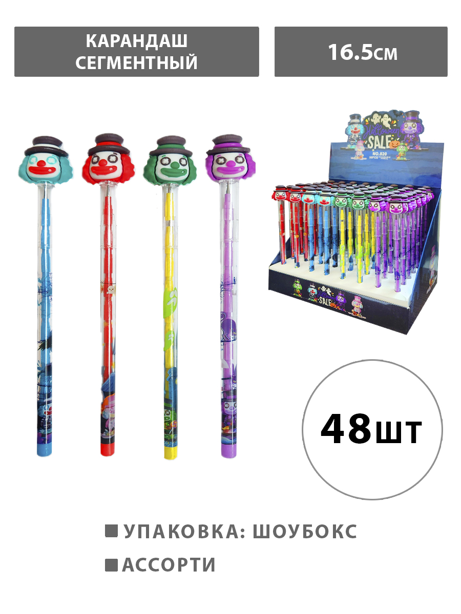 Карандаш сегментный " KWELT " The clown's ghost 1,5мм, HB, колпачок со съемной резиновой фигуркой ассорти, шоубокс