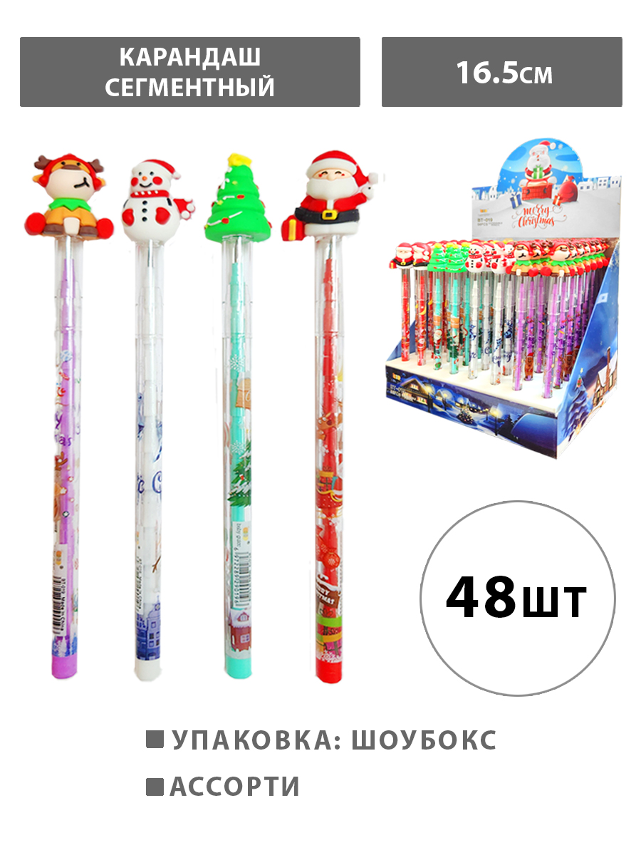 Карандаш сегментный " KWELT " Marry Christmas 1,5мм, HB, колпачок со съемной резиновой фигуркой ассорти, шоубокс