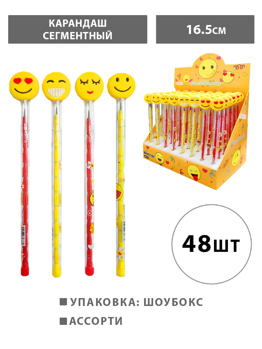 Карандаш сегментный " KWELT " Smile 1,5мм, HB, колпачок со съемной резиновой фигуркой ассорти, шоубокс