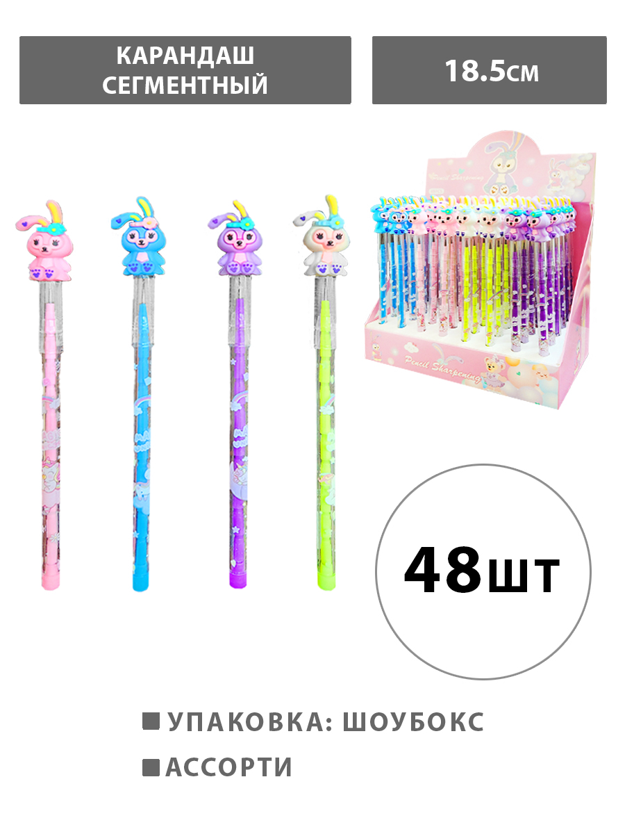 Карандаш сегментный " KWELT " Bunny 1,5мм, HB, колпачок со съемной резиновой фигуркой ассорти, шоубокс